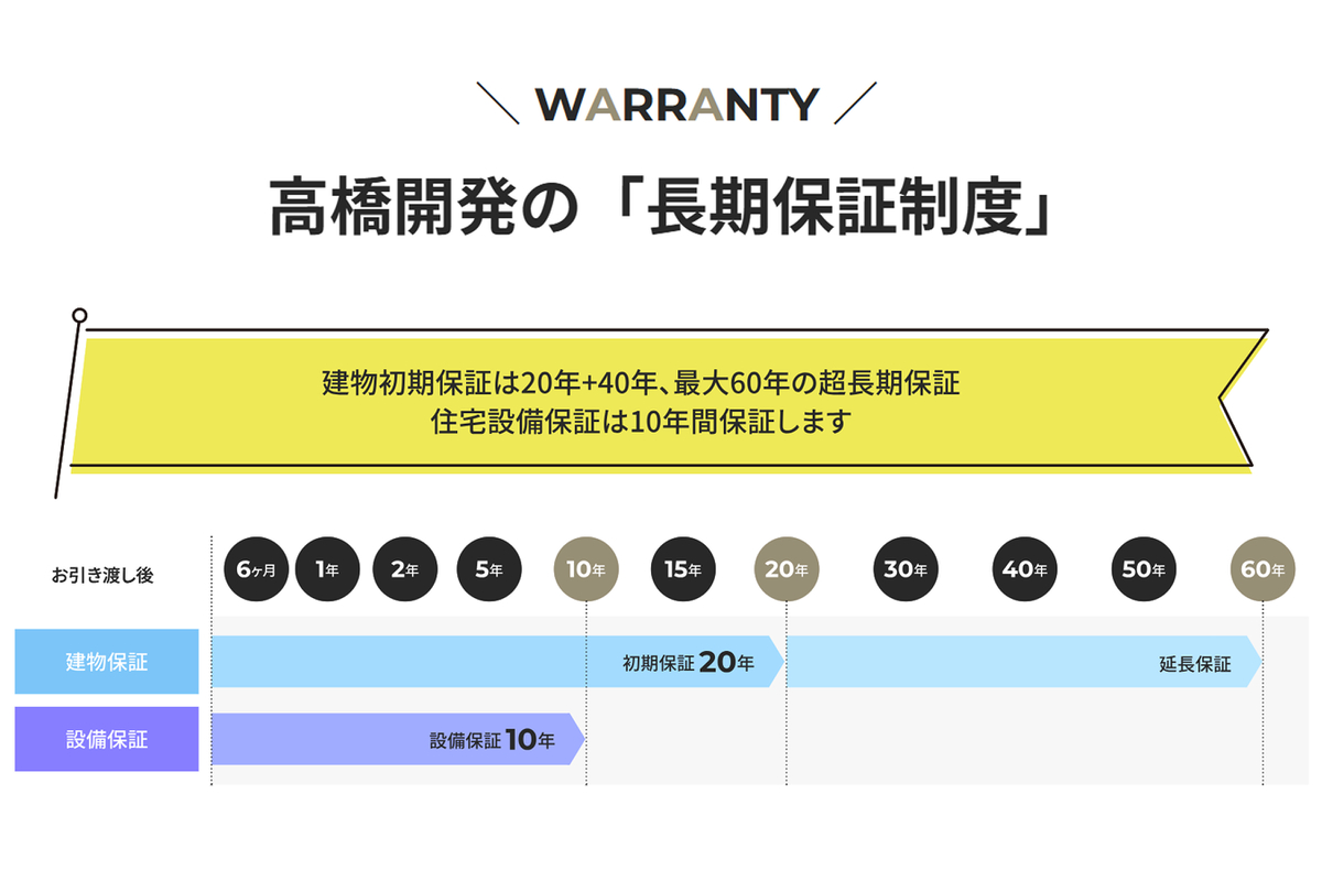建物初期保証20年・住宅設備保証10年の...