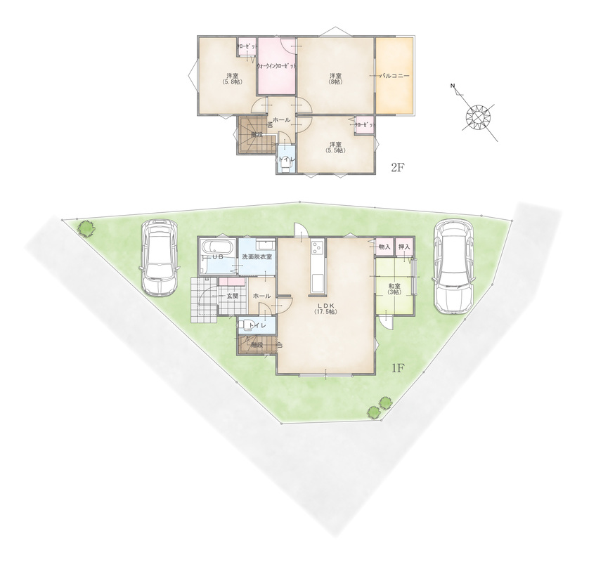 - ※完成予想図やCG合成画像は、門塀・植栽・庭・外観等、実際とは多少異なる場合があります。