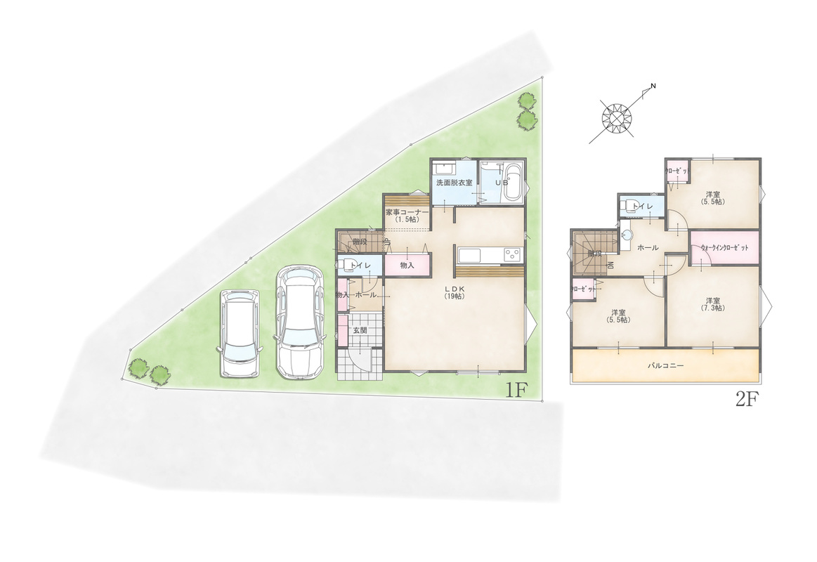 - ※完成予想図やCG合成画像は、門塀・植栽・庭・外観等、実際とは多少異なる場合があります。