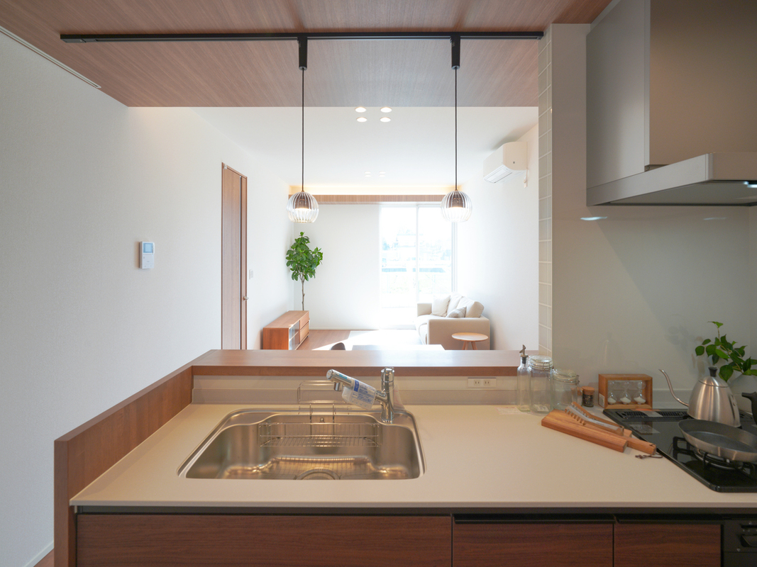 家族と会話を楽しみながら料理ができる対面キッチン。