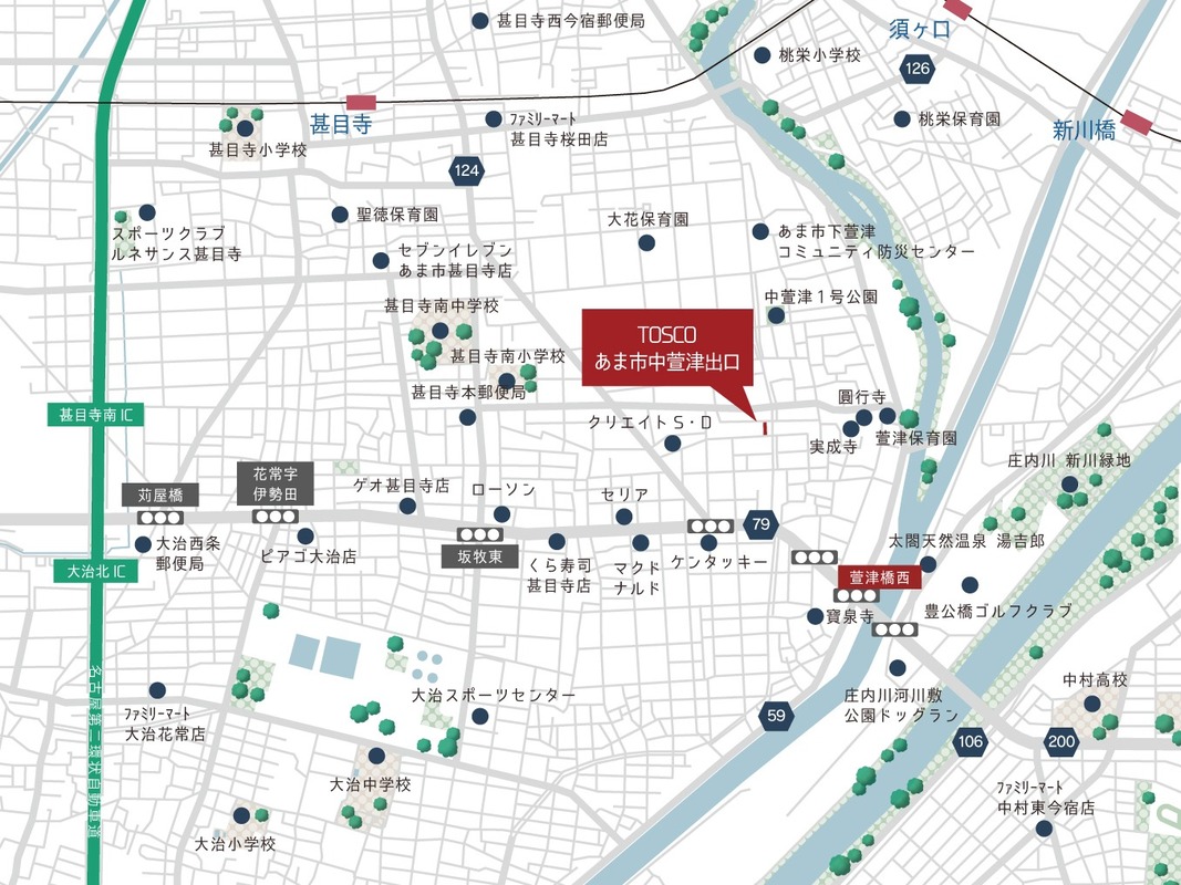 建築条件付き土地 【TOSCO】あま市中萱津出口/名古屋方面へのアクセスがスムーズ/買い物施設充実/前面道路6m以上