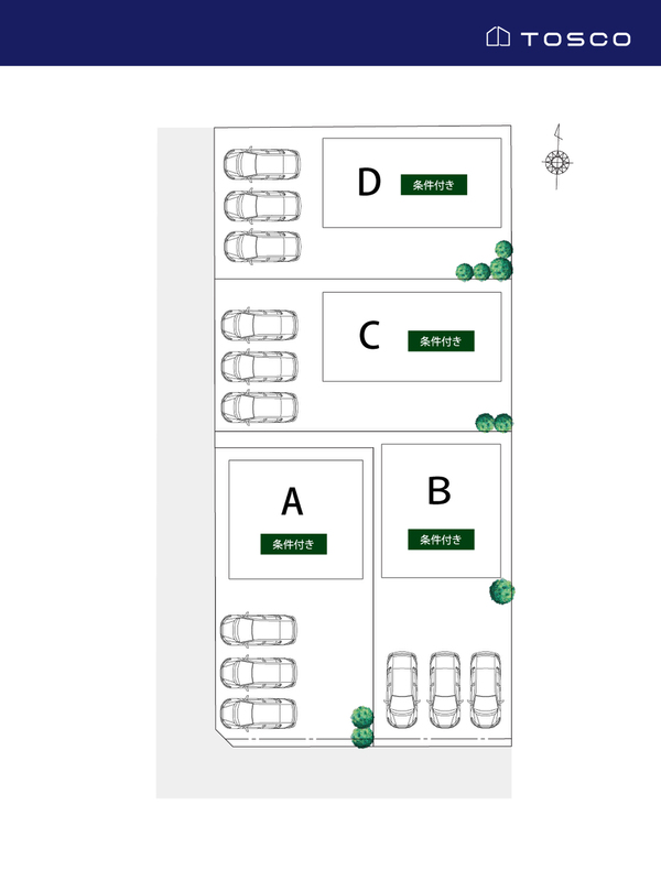 | 建築条件 | 建築条件付 建築条件付き土地とは一定期間内に、その土地に建築する建物の請負契約が締結されることを条件に販売される土地のことです。 土地売買契約締結後、建築請負会社と購入した土地に建築する建物について協議することになります。広告に参考プランが掲載されている場合でも、プランは一例であり、実際の建築プランは建築請負会社と土地購入者で協議・検討することが可能です。 期間内に建築プランが決まらず建築請負契約が成立しなければ土地売買契約は白紙となり、支払済みの金銭はすべて返還されます。 建築請負会社が指定されている場合と指定されていない場合があります。 また、建築条件付き土地の価格には、建物価格は含まれません。 |
