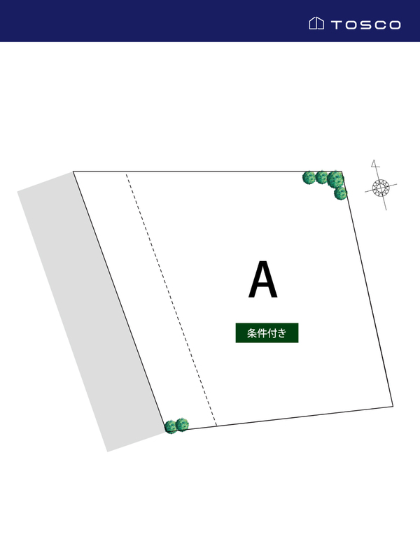 | 建築条件 | 建築条件付 建築条件付き土地とは一定期間内に、その土地に建築する建物の請負契約が締結されることを条件に販売される土地のことです。 土地売買契約締結後、建築請負会社と購入した土地に建築する建物について協議することになります。広告に参考プランが掲載されている場合でも、プランは一例であり、実際の建築プランは建築請負会社と土地購入者で協議・検討することが可能です。 期間内に建築プランが決まらず建築請負契約が成立しなければ土地売買契約は白紙となり、支払済みの金銭はすべて返還されます。 建築請負会社が指定されている場合と指定されていない場合があります。 また、建築条件付き土地の価格には、建物価格は含まれません。 |