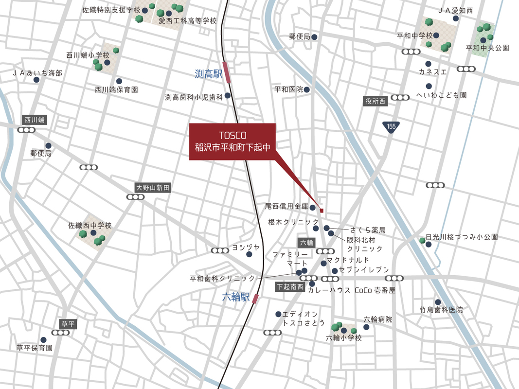 - ※地図上に表示される各種アイコンなどの情報は、おおよその所在地を表すものであり、物件・施設などの地点を保証するものではありません。