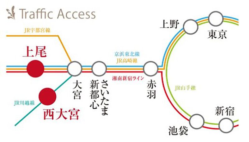 □JR「西大宮」駅・「上尾」駅の3路線2駅利用可能!