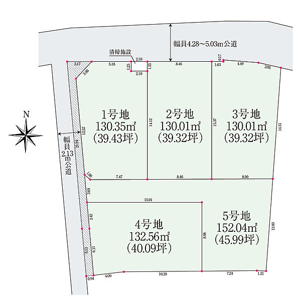 □全区画敷地面積39坪超!整った区画形成や角地含む全5区画の街並み。