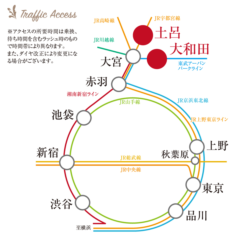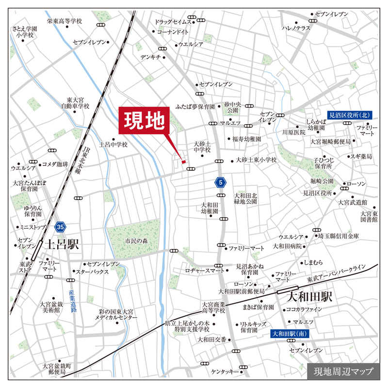 □JR宇都宮線・湘南新宿ライン「土呂」駅まで歩17分、東武野田線「大和田」駅まで歩18分。