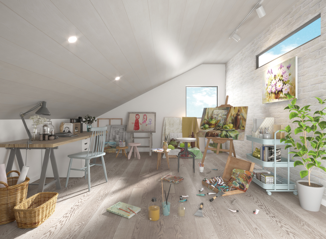 夏、暑さを感じやすい屋根裏(小屋裏収納)もアルミを使った通気スペーサーで屋根を遮熱しているため夏の暑さも防げます。