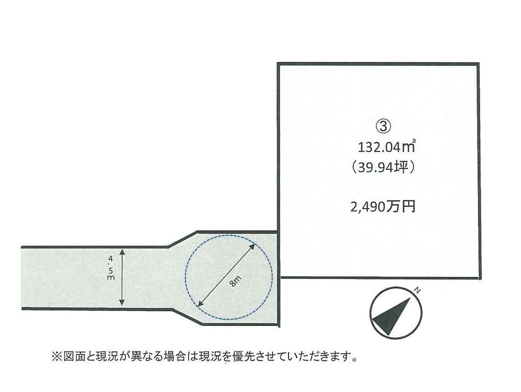 | 建築条件 | 建築条件付 建築条件付き土地とは一定期間内に、その土地に建築する建物の請負契約が締結されることを条件に販売される土地のことです。 土地売買契約締結後、建築請負会社と購入した土地に建築する建物について協議することになります。広告に参考プランが掲載されている場合でも、プランは一例であり、実際の建築プランは建築請負会社と土地購入者で協議・検討することが可能です。 期間内に建築プランが決まらず建築請負契約が成立しなければ土地売買契約は白紙となり、支払済みの金銭はすべて返還されます。 建築請負会社が指定されている場合と指定されていない場合があります。 また、建築条件付き土地の価格には、建物価格は含まれません。 |