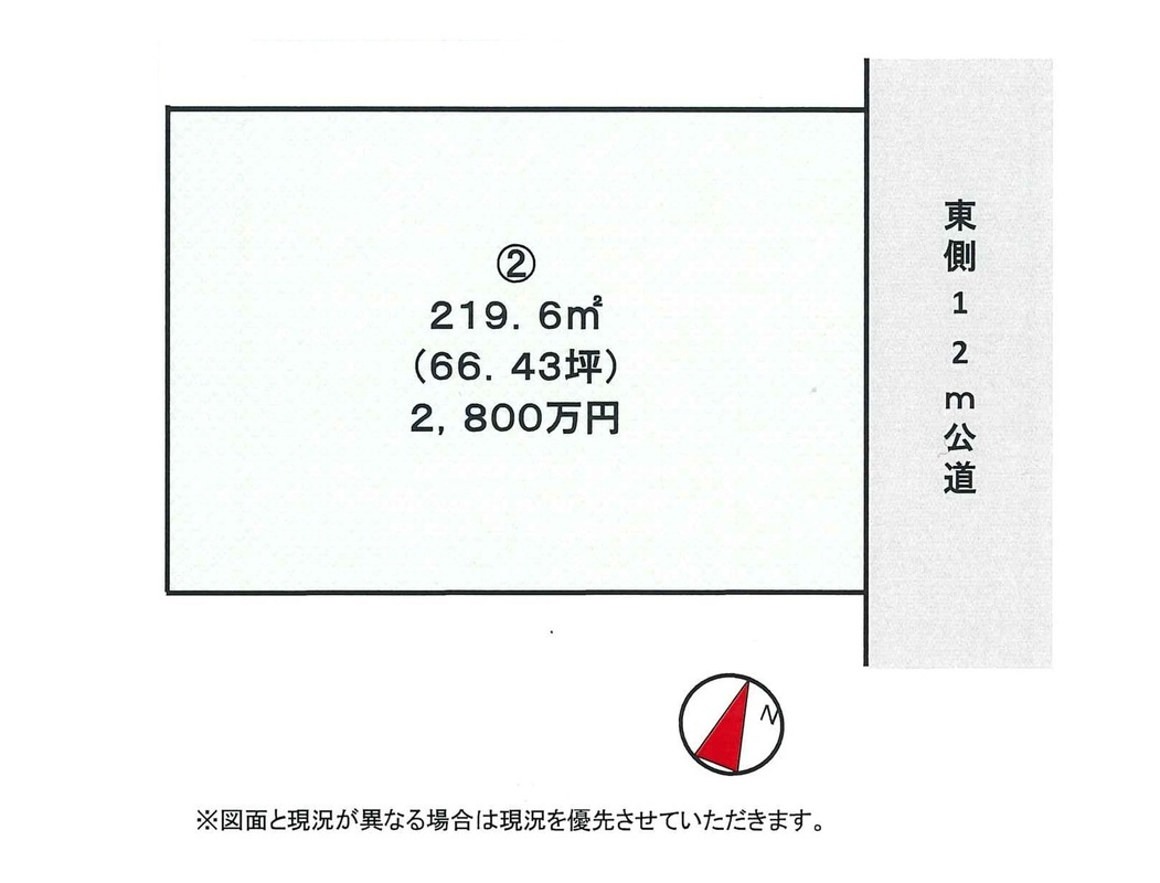 | 駐車場 | 2台 | 道路の幅員 | 東12m公道 |