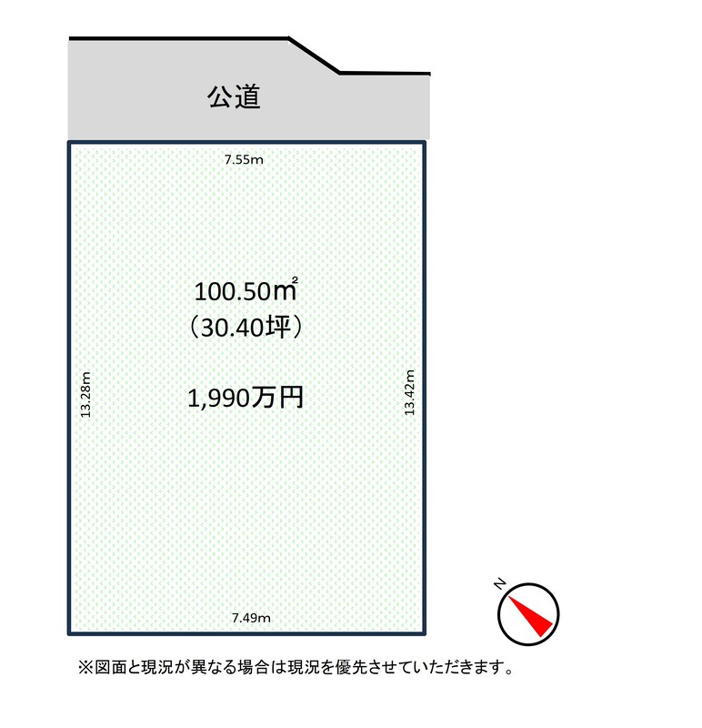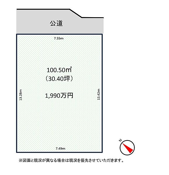 | 建築条件 | 建築条件付 建築条件付き土地とは一定期間内に、その土地に建築する建物の請負契約が締結されることを条件に販売される土地のことです。 土地売買契約締結後、建築請負会社と購入した土地に建築する建物について協議することになります。広告に参考プランが掲載されている場合でも、プランは一例であり、実際の建築プランは建築請負会社と土地購入者で協議・検討することが可能です。 期間内に建築プランが決まらず建築請負契約が成立しなければ土地売買契約は白紙となり、支払済みの金銭はすべて返還されます。 建築請負会社が指定されている場合と指定されていない場合があります。 また、建築条件付き土地の価格には、建物価格は含まれません。 |