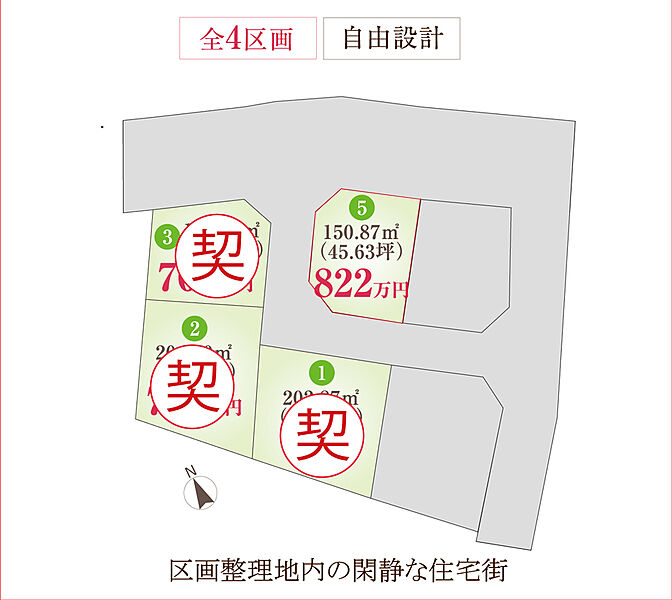 閑静な住宅街、3方接道の開放感のある区画!駅徒歩5分、スーパー徒歩3分と周辺施設も充実してます。