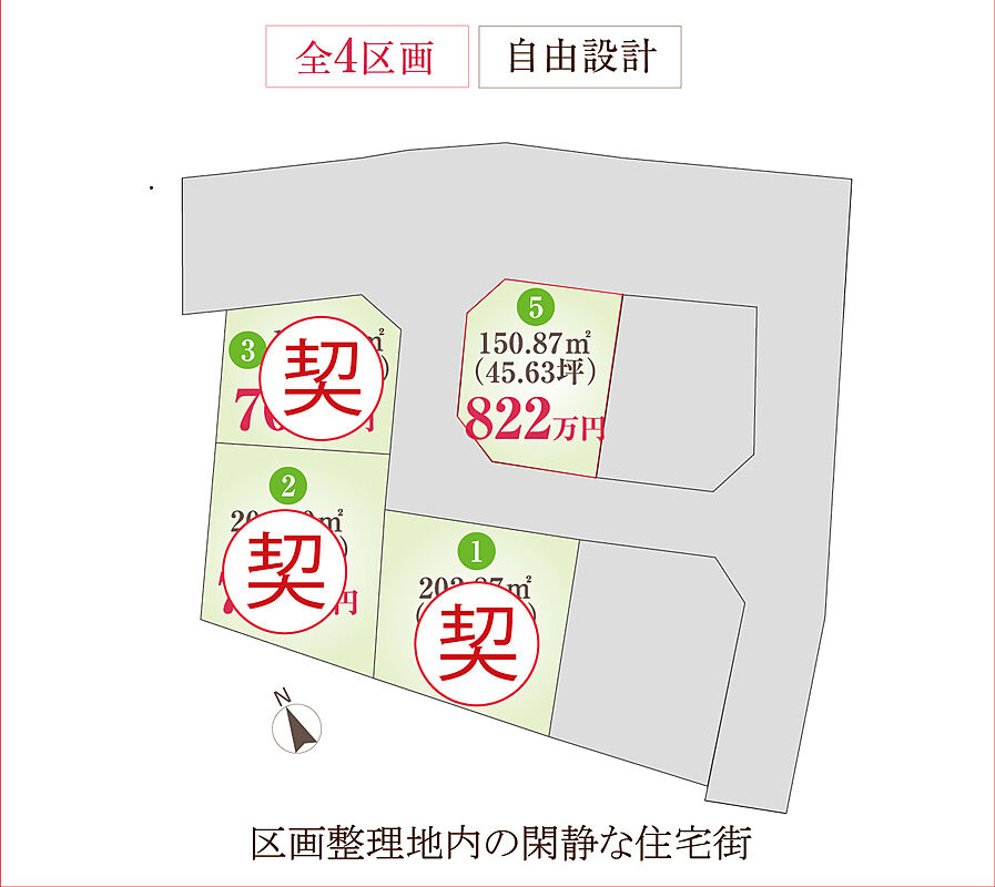 | 建築条件 | 建築条件付 建築条件付き土地とは一定期間内に、その土地に建築する建物の請負契約が締結されることを条件に販売される土地のことです。 土地売買契約締結後、建築請負会社と購入した土地に建築する建物について協議することになります。広告に参考プランが掲載されている場合でも、プランは一例であり、実際の建築プランは建築請負会社と土地購入者で協議・検討することが可能です。 期間内に建築プランが決まらず建築請負契約が成立しなければ土地売買契約は白紙となり、支払済みの金銭はすべて返還されます。 建築請負会社が指定されている場合と指定されていない場合があります。 また、建築条件付き土地の価格には、建物価格は含まれません。 |