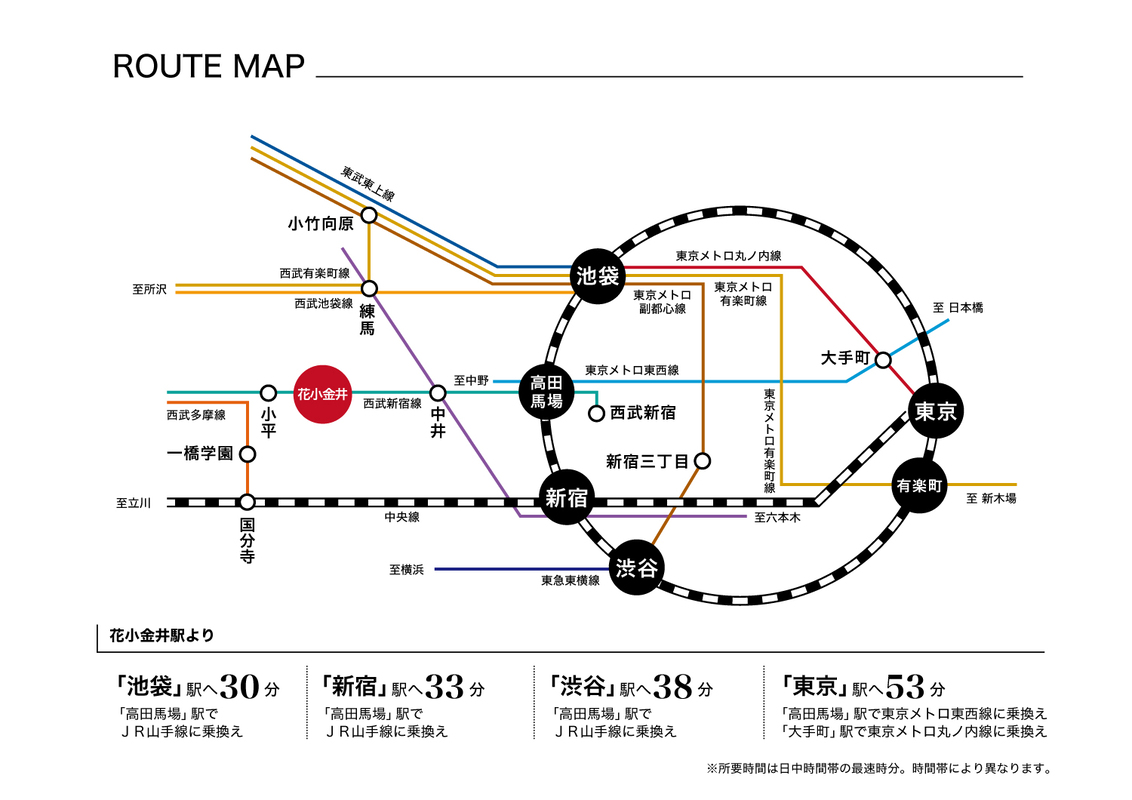 西武新宿線「花小金井」駅 徒歩23分~23分 西武新宿線「小平」駅 徒歩23分 西武多摩湖線「一橋学園」駅 徒歩22分 |