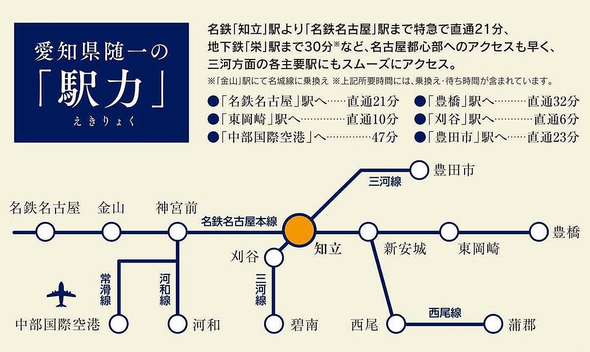 名鉄三河線「知立」駅 徒歩22分~23分 (自転車約8分) 名鉄名古屋本線「牛田」駅 徒歩22分~24分 (自転車約8分) |