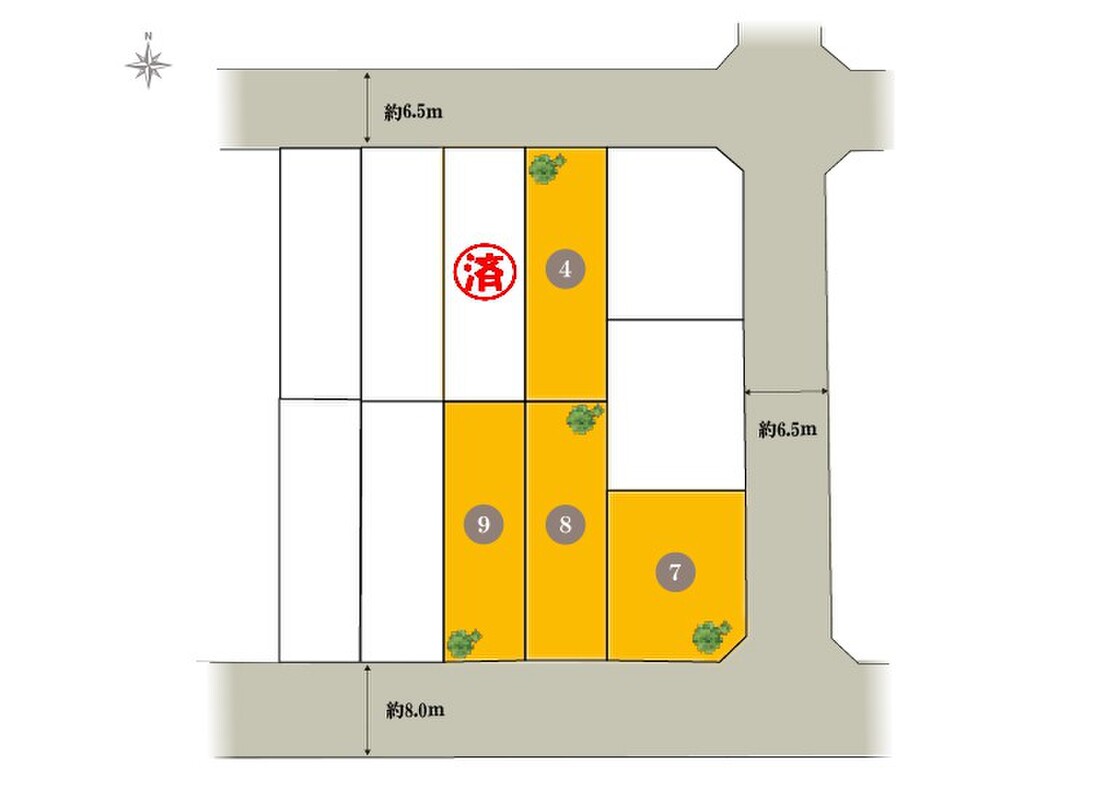 | 駐車場 | 1台 ~ 2台 | 道路の幅員 | ●道路幅員/北側:公道 幅員約6.5m/東側:公道 幅員約6.5m/南側:公道 幅員約8.0m |
