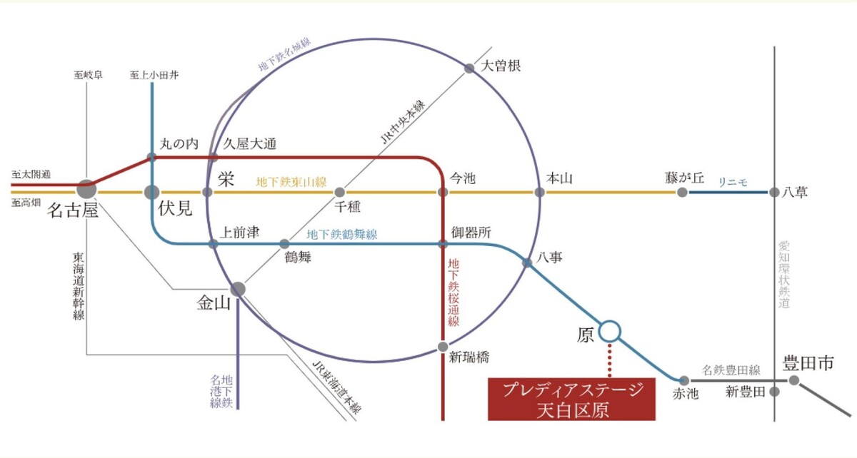 地下鉄鶴舞線「原」駅、徒歩約16分。