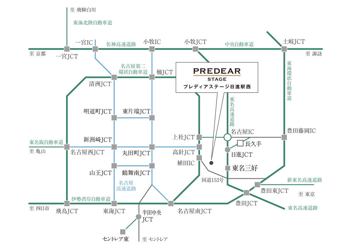 西は名古屋市、東は豊田市に隣接しており、アクセス良好。