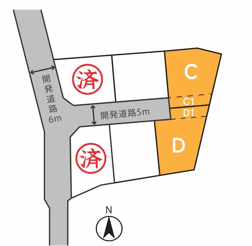 ●造成工事完了/済み ●道路幅員/公道(市道・開発区域内道路) 5m~6m ●水道負担金/加入分担金132,000円(税込)※φ20mmの場合 ●その他の制限/宅地造成及び特定盛土等規制法 ●私道負担/無し※敷地内道路に一部地役権設定有り(C1 D1) |