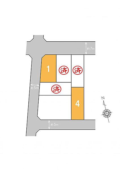 | 駐車場 | - | 道路の幅員 | 公道 北側 約7.00m、公道 西側 約5.00m、公道 南側 約5.00m |