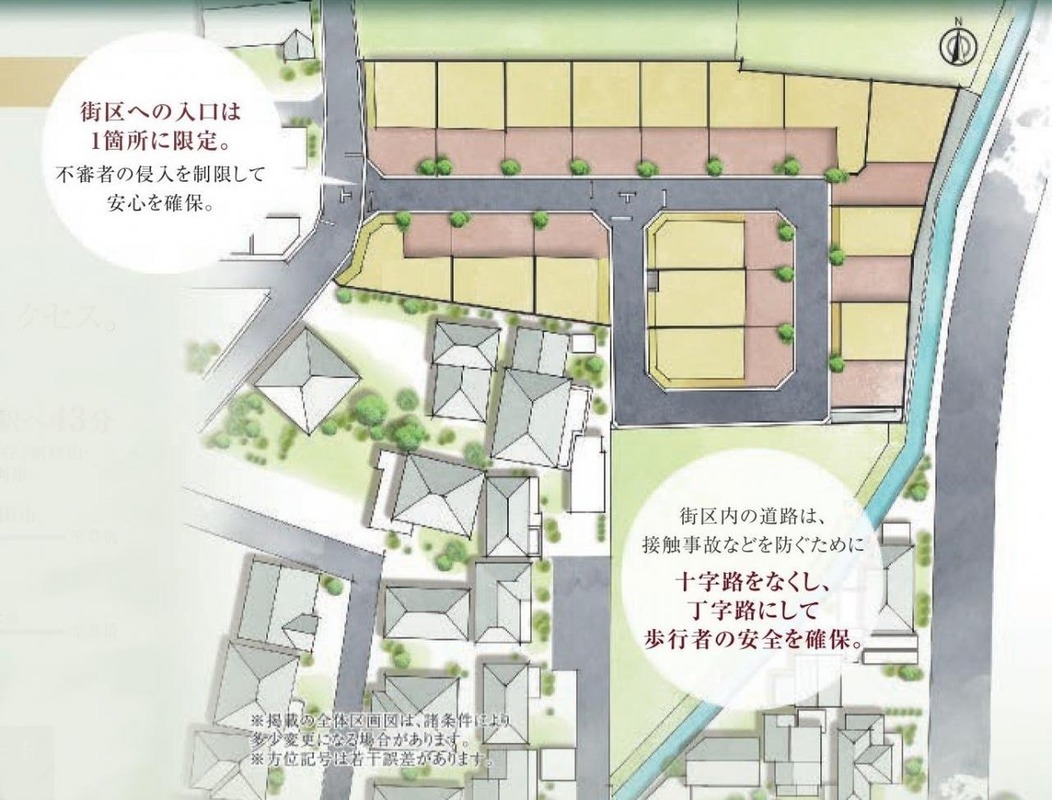 | 建築条件 | 建築条件付 建築条件付き土地とは一定期間内に、その土地に建築する建物の請負契約が締結されることを条件に販売される土地のことです。 土地売買契約締結後、建築請負会社と購入した土地に建築する建物について協議することになります。広告に参考プランが掲載されている場合でも、プランは一例であり、実際の建築プランは建築請負会社と土地購入者で協議・検討することが可能です。 期間内に建築プランが決まらず建築請負契約が成立しなければ土地売買契約は白紙となり、支払済みの金銭はすべて返還されます。 建築請負会社が指定されている場合と指定されていない場合があります。 また、建築条件付き土地の価格には、建物価格は含まれません。 |