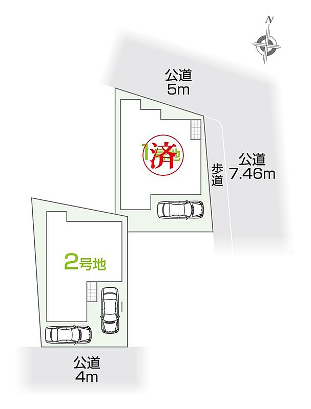 | 駐車場 | 1台 ~ 2台 | 道路の幅員 | 南側公道 幅員約4m、接道7.7m |