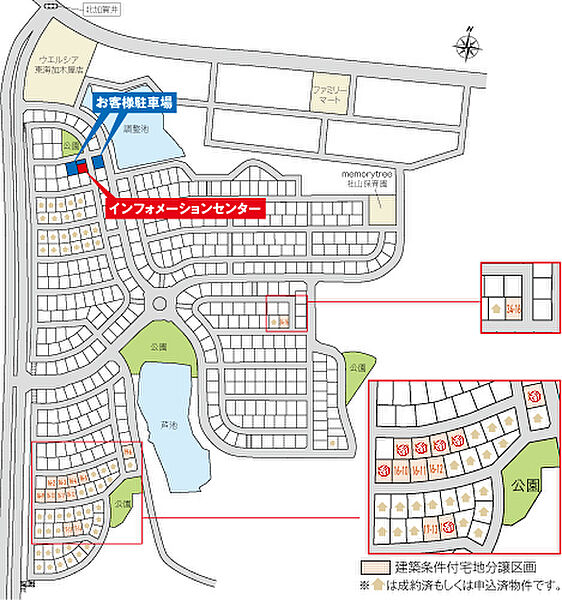 | 備考 | ●宅地造成等規制法・砂防法・社山北地区計画※総区画/総区画数441区画(うち、積水ハウス分100区画)※良好なまちなみの形成を図るため、「まちなみガイドライン」を作成しています。※自治会の集会所建設協力金1区画70,000円、自治会費用については年2回徴収1回1,500円(1世帯)です。※その他の費用:下水道受益者負担金1m2あたり約74円。●本分譲地の土地売買契約は、契約締結後3ヶ月以内に売主である積水ハウス株式会社との間で建築工事請負契約が成立することを条件として効力を生じます。期限までに、建築工事請負契約が成立しなかったときは、土地売買契約の無効が確定し、受領済の手付金等は、全額無利息にてすみやかに返還いたします。 | ||