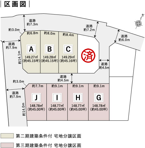 | 開発面積 | 1771.61m2 | 建ぺい率・容積率 | 建ぺい率:60%/容積率:200%(A・B・C・J号地)、180%(G・H・I号地) |