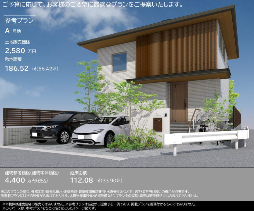 - ※完成予想図やCG合成画像は、門塀・植栽・庭・外観等、実際とは多少異なる場合があります。