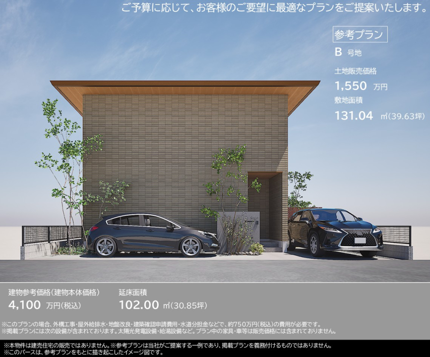 | 建築条件 | 建築条件付 建築条件付き土地とは一定期間内に、その土地に建築する建物の請負契約が締結されることを条件に販売される土地のことです。 土地売買契約締結後、建築請負会社と購入した土地に建築する建物について協議することになります。広告に参考プランが掲載されている場合でも、プランは一例であり、実際の建築プランは建築請負会社と土地購入者で協議・検討することが可能です。 期間内に建築プランが決まらず建築請負契約が成立しなければ土地売買契約は白紙となり、支払済みの金銭はすべて返還されます。 建築請負会社が指定されている場合と指定されていない場合があります。 また、建築条件付き土地の価格には、建物価格は含まれません。 |