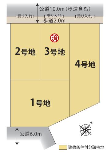 | 建築条件 | 建築条件付 建築条件付き土地とは一定期間内に、その土地に建築する建物の請負契約が締結されることを条件に販売される土地のことです。 土地売買契約締結後、建築請負会社と購入した土地に建築する建物について協議することになります。広告に参考プランが掲載されている場合でも、プランは一例であり、実際の建築プランは建築請負会社と土地購入者で協議・検討することが可能です。 期間内に建築プランが決まらず建築請負契約が成立しなければ土地売買契約は白紙となり、支払済みの金銭はすべて返還されます。 建築請負会社が指定されている場合と指定されていない場合があります。 また、建築条件付き土地の価格には、建物価格は含まれません。 |
