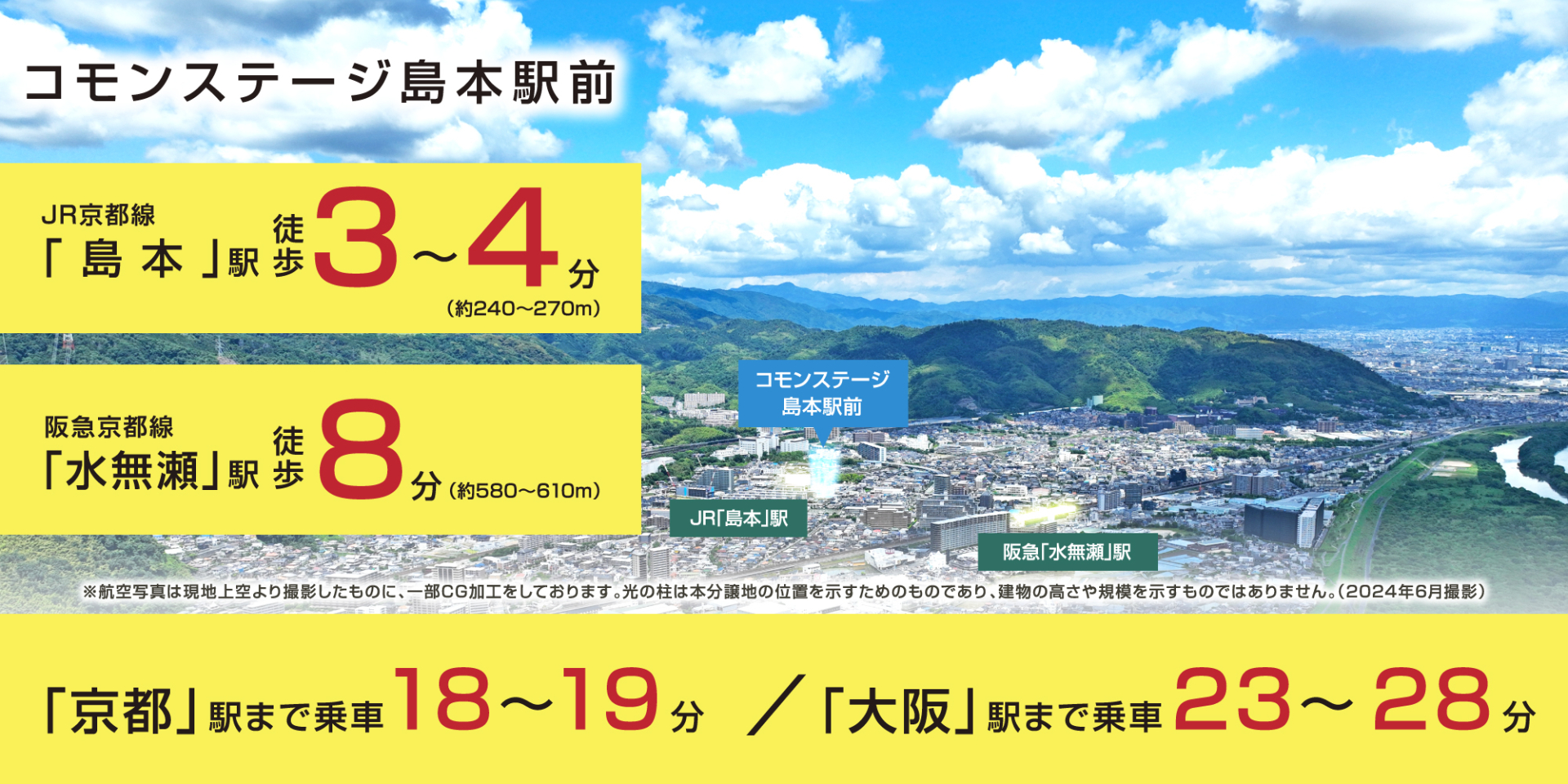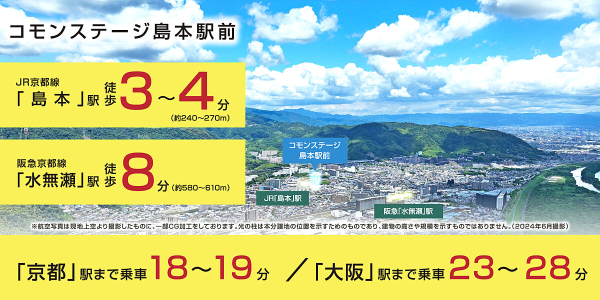 JR東海道・山陽本線「島本」駅 徒歩3分~4分 阪急京都本線「水無瀬」駅 徒歩8分 |