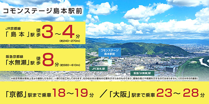 JR東海道・山陽本線「島本」駅 徒歩3分~4分 阪急京都本線「水無瀬」駅 徒歩7分~8分 |