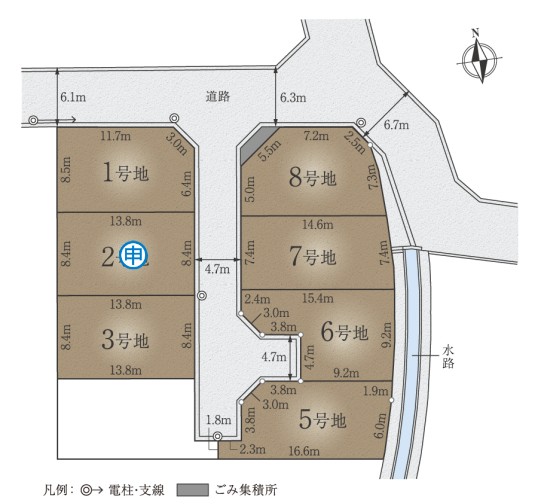 | 駐車場 | - | 道路の幅員 | 道路幅:4.7m~6.7m/道路幅の備考:約6.1m~6.3m、約6.7m、約4.7m ※東側道路は建築基準法第42条の道路に該当しません。 |