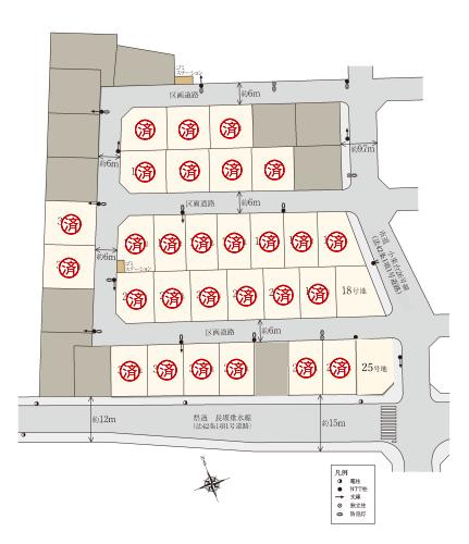 | 主たる設備の概要 | ●電気/関西電力株式会社●ガス/都市ガス(大阪ガス)●上水道/公営水道●下水道/公共下水道●雨水/LU街渠●防犯灯/あり | 開発許可番号 | 完成済(18号地、25号地) |