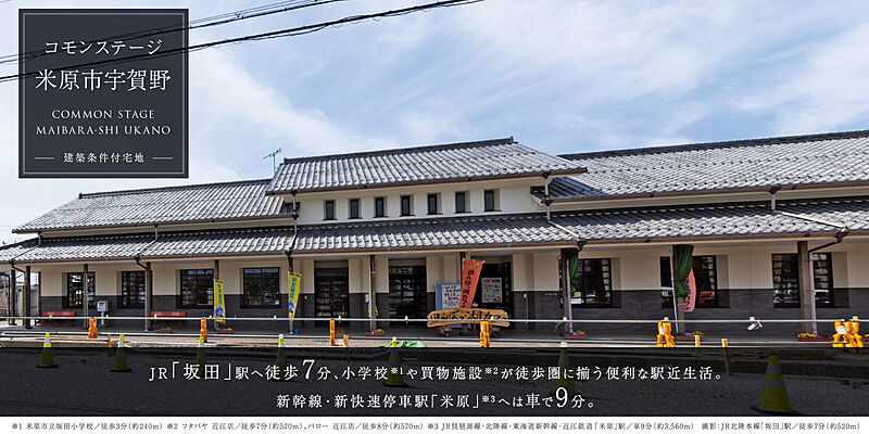 JR坂田駅へ徒歩7分、新快速利用で草津・大津・京都にダイレクトアクセスできます。2つのスーパー、ドラッグストアが徒歩8分圏内、クリニックへ徒歩10分。生活を支える施設が身近に揃います。