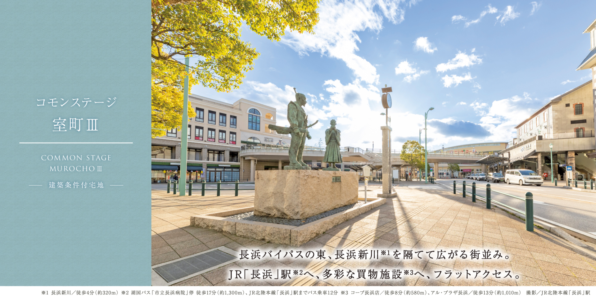 新快速停車駅のJR「長浜」駅へ車9分、東海道新幹線が乗り入れる「米原」駅へ乗車10分。暮らしのフィールドが広がる56坪超の2区画を分譲中です。豊かな自然を感じるまちなみで、穏やかな暮らしが望めます。