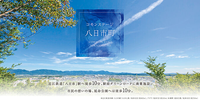 近江鉄道本線・八日市線「八日市」駅へ徒歩10分。通勤・通学に便利な距離です。大型スーパーやショッピングセンターが身近に揃う買い物に事欠かない立地で、休日の愉しみも広がるロケーションです。
