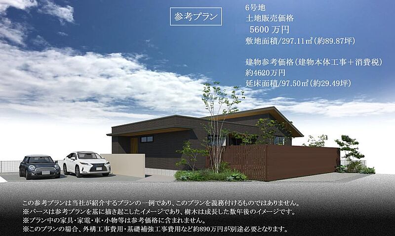 - ※完成予想図やCG合成画像は、門塀・植栽・庭・外観等、実際とは多少異なる場合があります。