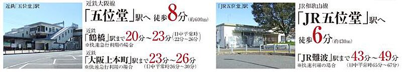 近鉄大阪線「五位堂」駅 徒歩8分 JR和歌山線「JR五位堂」駅 徒歩6分 |