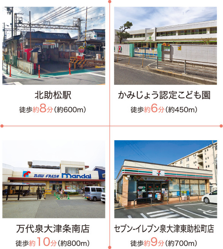 ■現地案内会開催!現地だからこそわかる周辺環境や土地などを、目で見て体験を!■南海「北助松」駅まで徒歩8分!買い物施設や小学校が徒歩10分圏内に揃う、日々の暮らしに嬉しい街