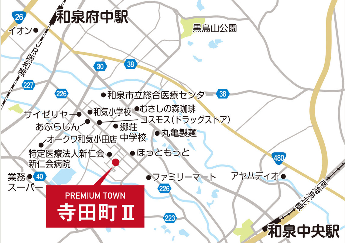JR阪和線「和泉府中」駅 徒歩34分 南海泉北線「和泉中央」駅 徒歩18分 |