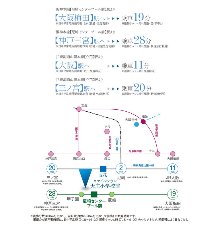 阪神とJRの2路線利用可能で、都市部へも乗換不要!