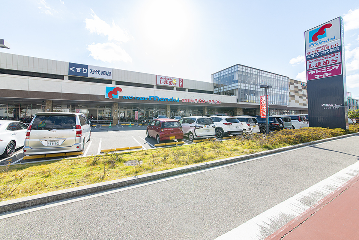 徒歩6分の場所にミリオンタウン西宮前浜があり、スーパーや衣料品店が揃います。