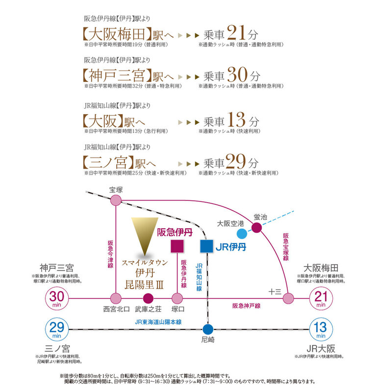 JR伊丹駅から三ノ宮へ約29分、大阪へ約13分と通勤通学にも。