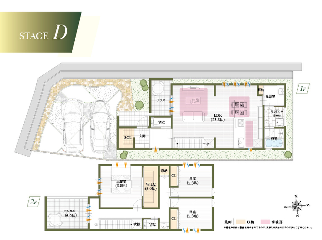- ※完成予想図やCG合成画像は、門塀・植栽・庭・外観等、実際とは多少異なる場合があります。