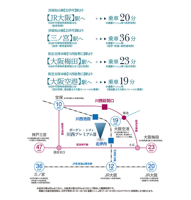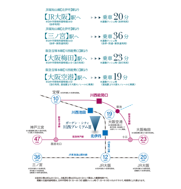 大阪へは約20分、神戸へも約40分で通うことができ、通勤通学は...