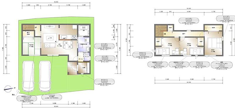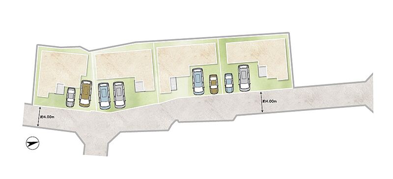 駐車スペース2台分付の「2階建×4LDK」住宅を建築可能。