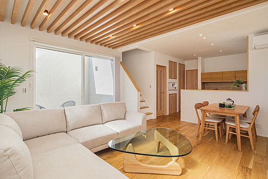 ご家族との会話がしやすい対面式キッチンやリビング階段を採用。水...