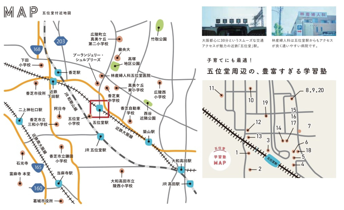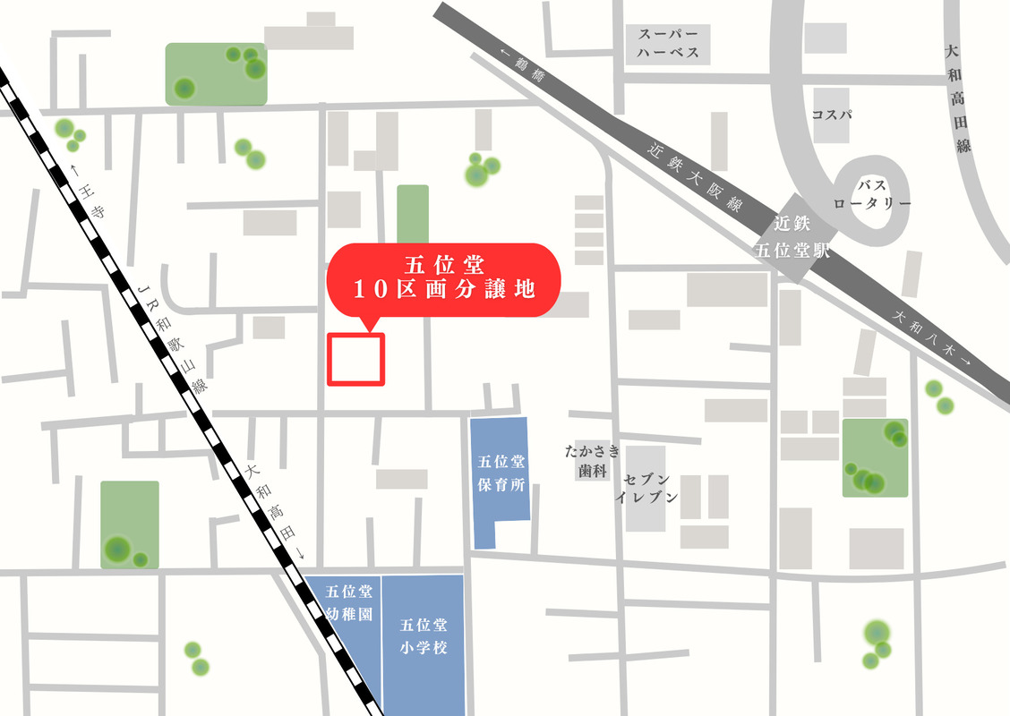 近鉄大阪線「五位堂」駅 徒歩6分 JR和歌山線「JR五位堂」駅 徒歩12分 |